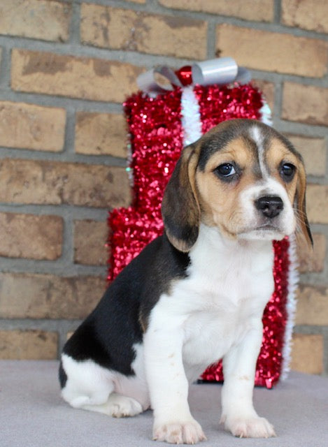 Her parents are friendly Beagles - her mom weighs 22 pounds and her dad weighs 28 pounds, so she is expected to mature into a nicely sized Beagle!