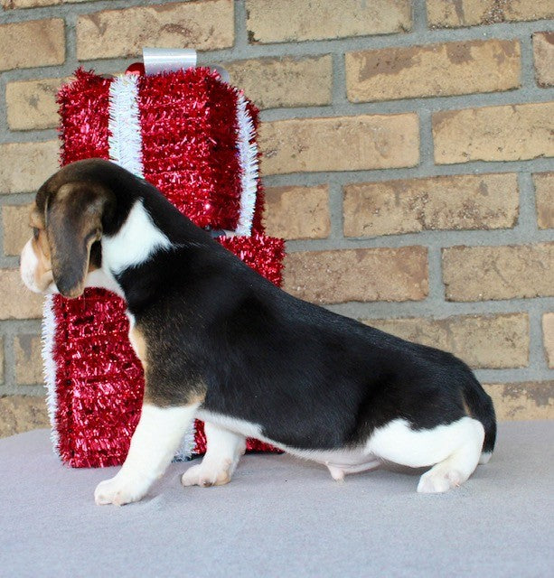 His parents are friendly Beagles - his mom weighs 22 pounds and his dad weighs 28 pounds, so he is expected to mature into a nicely sized Beagle!