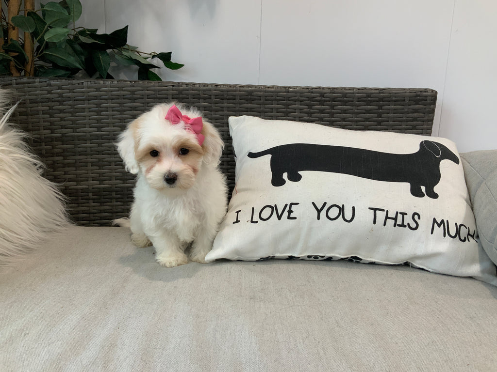 Hey There, My name is Cindy! I am a very beautiful female Pooton puppy! I was born on August 29th, 2025. I am such a sweet little girl! I am looking for my new family, could that be with you? If you choose me I will come home to you with my vaccinations and deworming up to date and I will also be microchipped. My mom is a Coton De Tulear that weighs 14 pounds and my dad is a Mini Poodle that weighs 11 pounds, so I am estimated to weigh 10-14 pounds fully grown. If you think that I would make the perfect little addition to your family, then please call or text to find out more information about me!