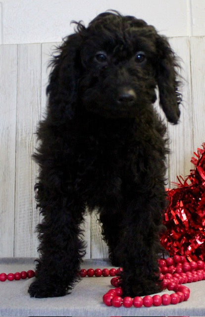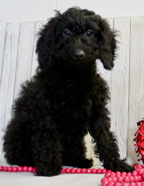 Her mom is an F1B Mini Labradoodle that weighs 22 pounds and her dad is a Mini Poodle that weighs 18 pounds -making her exceptional for families looking for an intelligent, allergy friendly pup!