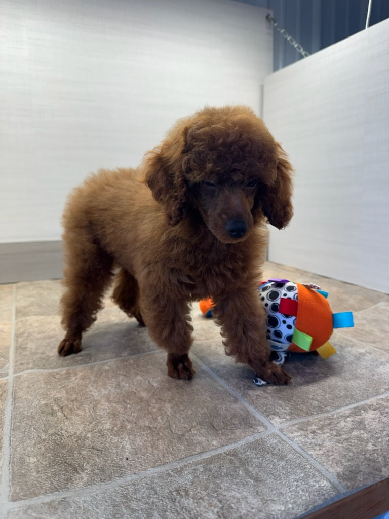 Hey There, My name is Champ! I am a very cute male Mini Poodle puppy! I was born on September 15th, 2025. I am such a sweet little boy! I am looking for my new family, could that be with you? If you choose me I will come home to you vet checked with my vaccinations and deworming up to date, microchipped, ACA Registered and I will also come with a Health Guarantee. My mom weighs 12 pounds and my dad weighs 6 pounds. If you think that I would make the perfect little addition to your family, then please call or text to find out more information about me!