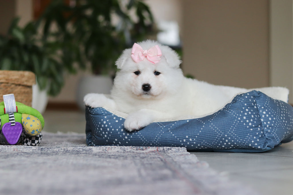 Meet June - a stunning female Samoyed puppy!