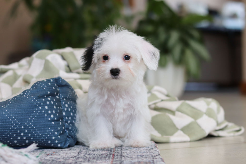 His mom is a Morkie that weighs 8 pounds and his dad is a Maltese that weighs 9 pounds, so Bobby should be the perfect sized cuddly companion!