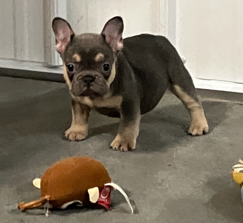 Hey There, My name is Collin! I am a very cute male French Bulldog puppy! I was born on September 19th, 2025. I am such a sweet and playful boy! I am looking for my new family, could that be with you? If you choose me I will come home to you vet checked with my vaccinations and deworming up to date. My mom weighs 27 pounds and my dad weighs 25 pounds. If you think that I would make the perfect little addition to your family, then please call or text to find out more information about me!