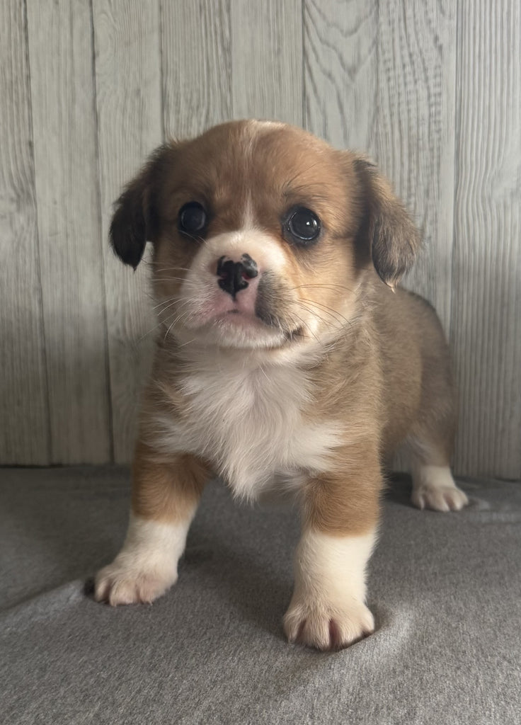Meet Goofy - an adorable male Corgi Cavalier Mix puppy!
