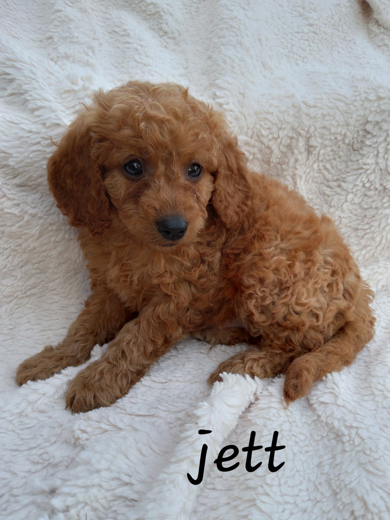 Hey There, My name is Jett! I am a very cute male F1B Mini Goldendoodle puppy! I was born on August 17th, 2025. I am such a sweet and playful boy! I am looking for my new family, could that be with you? If you choose me I will come home to you vet checked with my vaccinations and deworming up to date and I will also be microchipped. If you think that I would make the perfect addition to your family, then please call or text to find out more information about me!