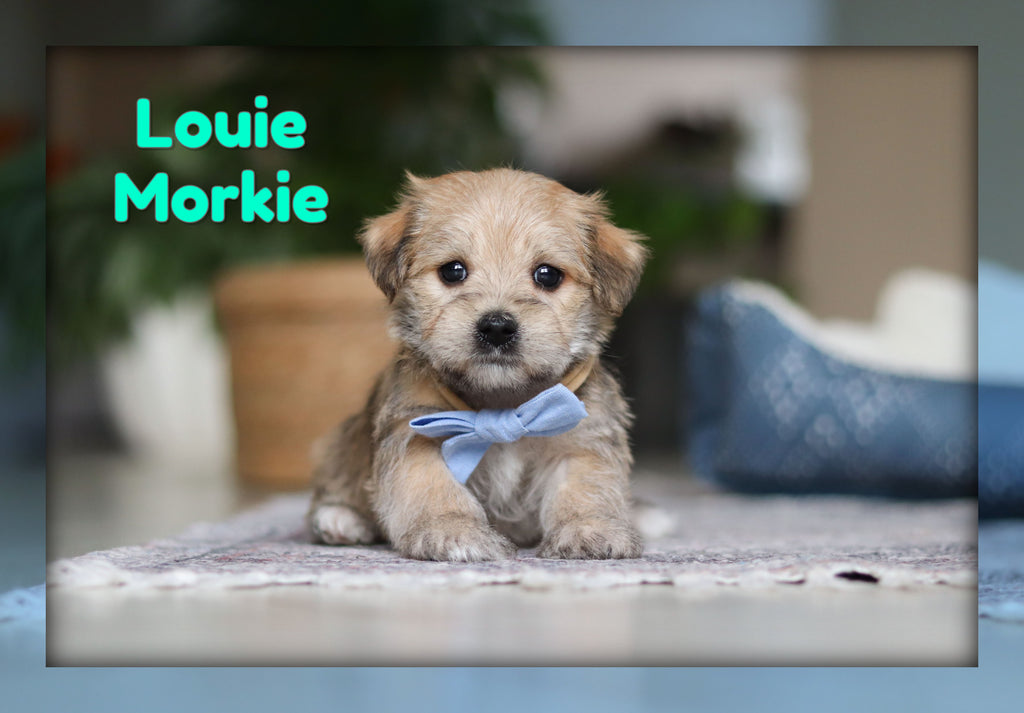 His mom is a Yorkie that weighs 14 pounds and his dad is a Maltese that weighs 9 pounds, so Louie should be the perfect size for snuggling on the couch together!