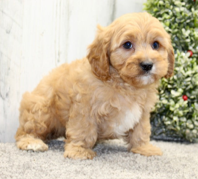 Rolo is a sweet and playful boy! He was born on September 24th, 2025. He is 3/4ths Mini Poodle and 1/4ths Cavalier. He will be vet checked, up to date on his vaccinations and he will also be microchipped - giving you a piece of mind when he joins his new family!