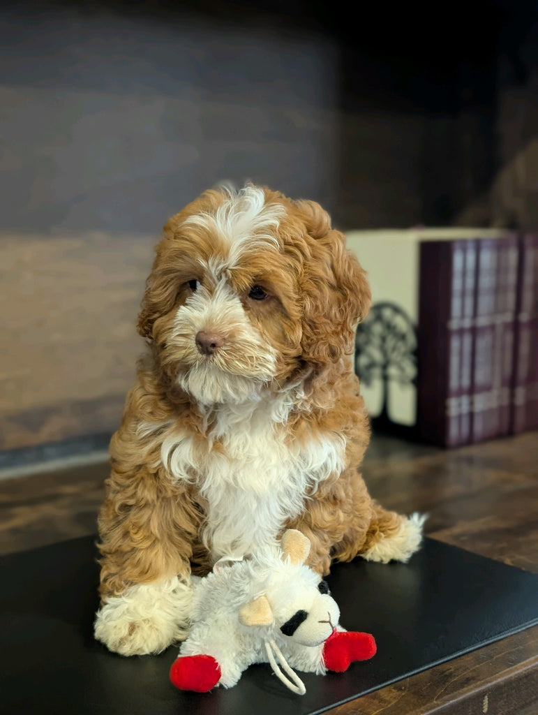 Her mom is a Cavapoo that weighs 17 pounds and her dad is a Mini Poodle that weighs 19 pounds - she will be the perfect size for anyone looking a small loveable companion!