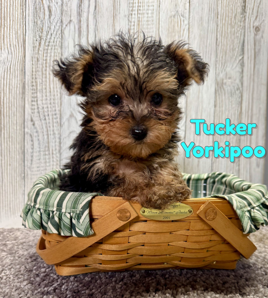 Hey There, My name is Tucker! I am a very cute male Yorkipoo puppy! I was born on August 31st, 2025. I am such a sweet little boy! I am looking for my new family, could that be with you? If you choose me I will come home to you vet checked with my vaccinations and deworming up to date and I will also be microchipped. My mom is a Yorkipoo that weighs 6.5 pounds and my dad is a Yorkie that weighs 4 pounds. If you think that I would make the perfect addition to your family, then please call or text to find out more information about me!